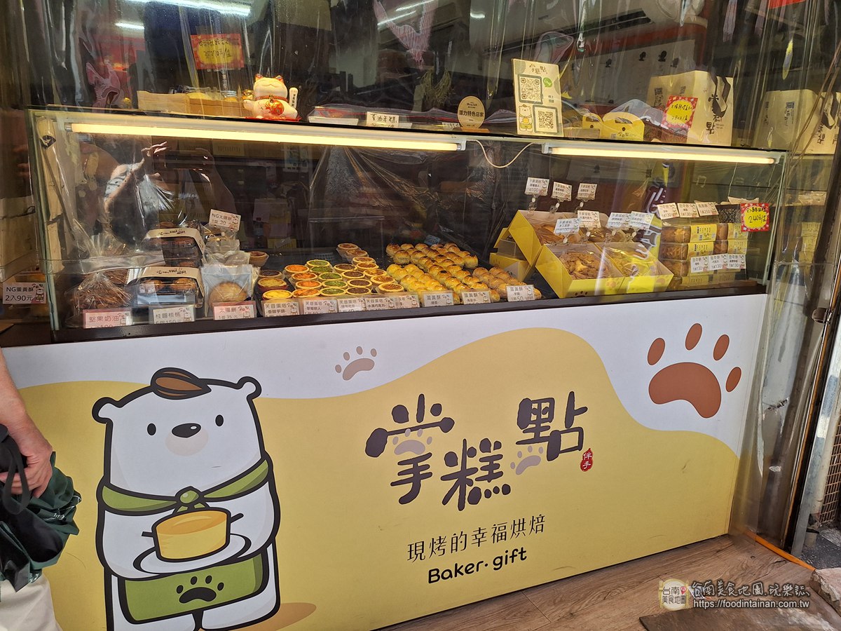 掌糕點手撕蛋糕位於夏林路建安宮後面,在南寧街近國華街一段上。不大的店面前窗檯裡,擺著當天現烤的各式手工糕點~有古早味手撕蛋糕芙蓉蛋塔蛋黃酥鳳凰酥曲奇餅干等,店家更貼心推出應景禮盒,送人體面又大方!