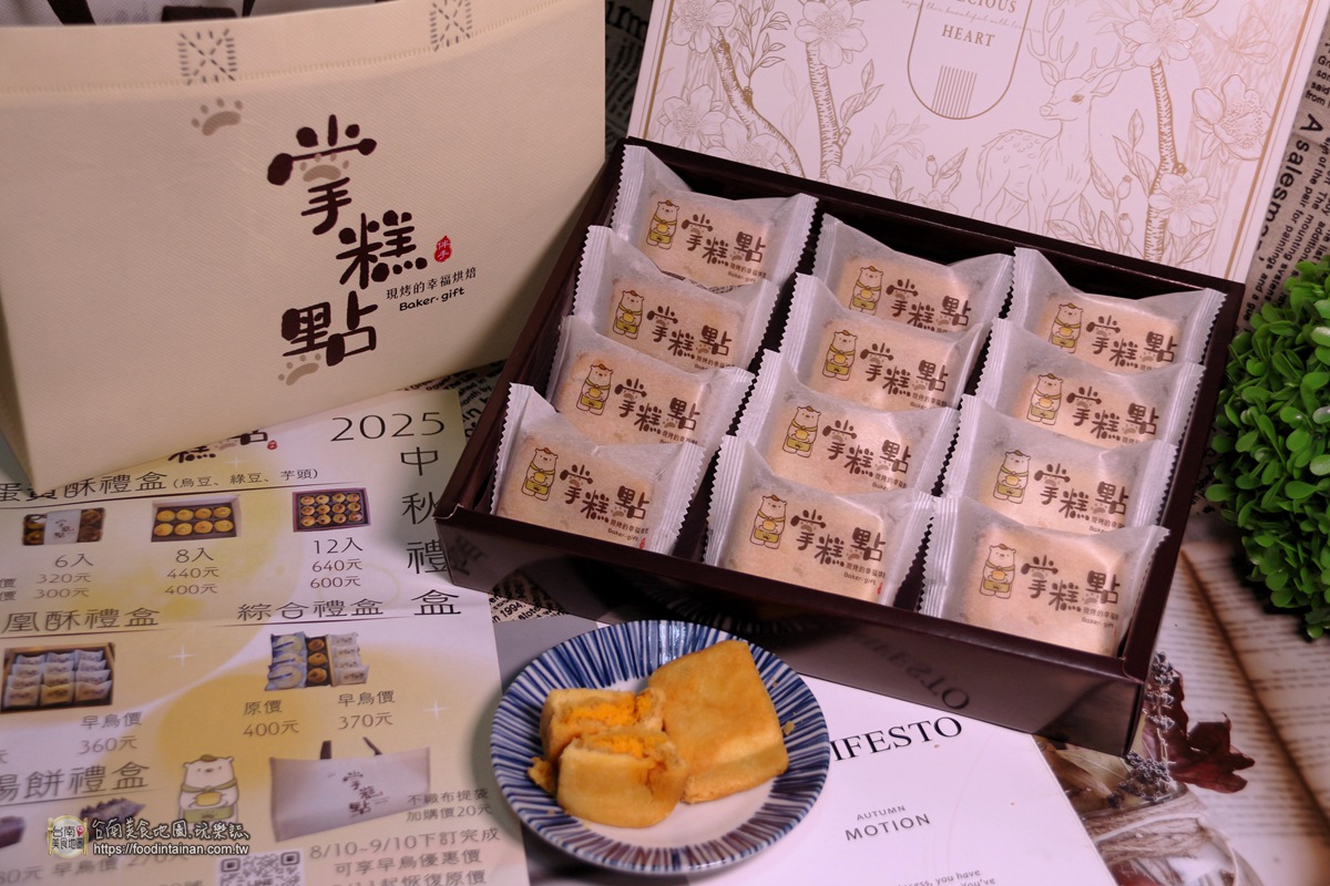 台南中秋禮盒推薦「掌糕點手撕蛋糕」!手工製作傳統創意兼具的蛋黃酥、鳳凰酥及太陽餅等多種口味的綜合禮盒,送人送到心坎禮