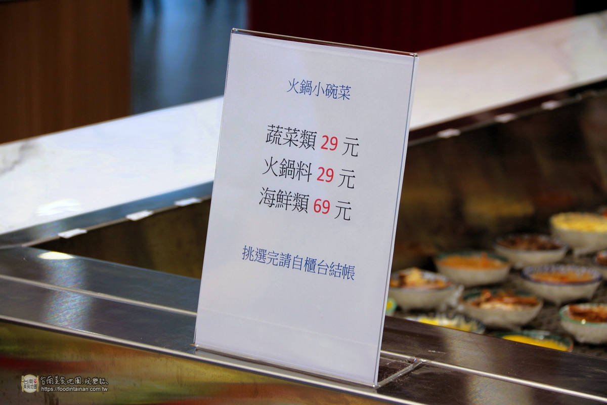 店家會基於食安考量,現場擺盤會用示意圖展示,選完小碗菜後加熱送至您的坐位,每日不定時補貨高達50多種口味任君挑選~ ※單點火鍋套餐送『小碗菜一碗(口味任選)』※