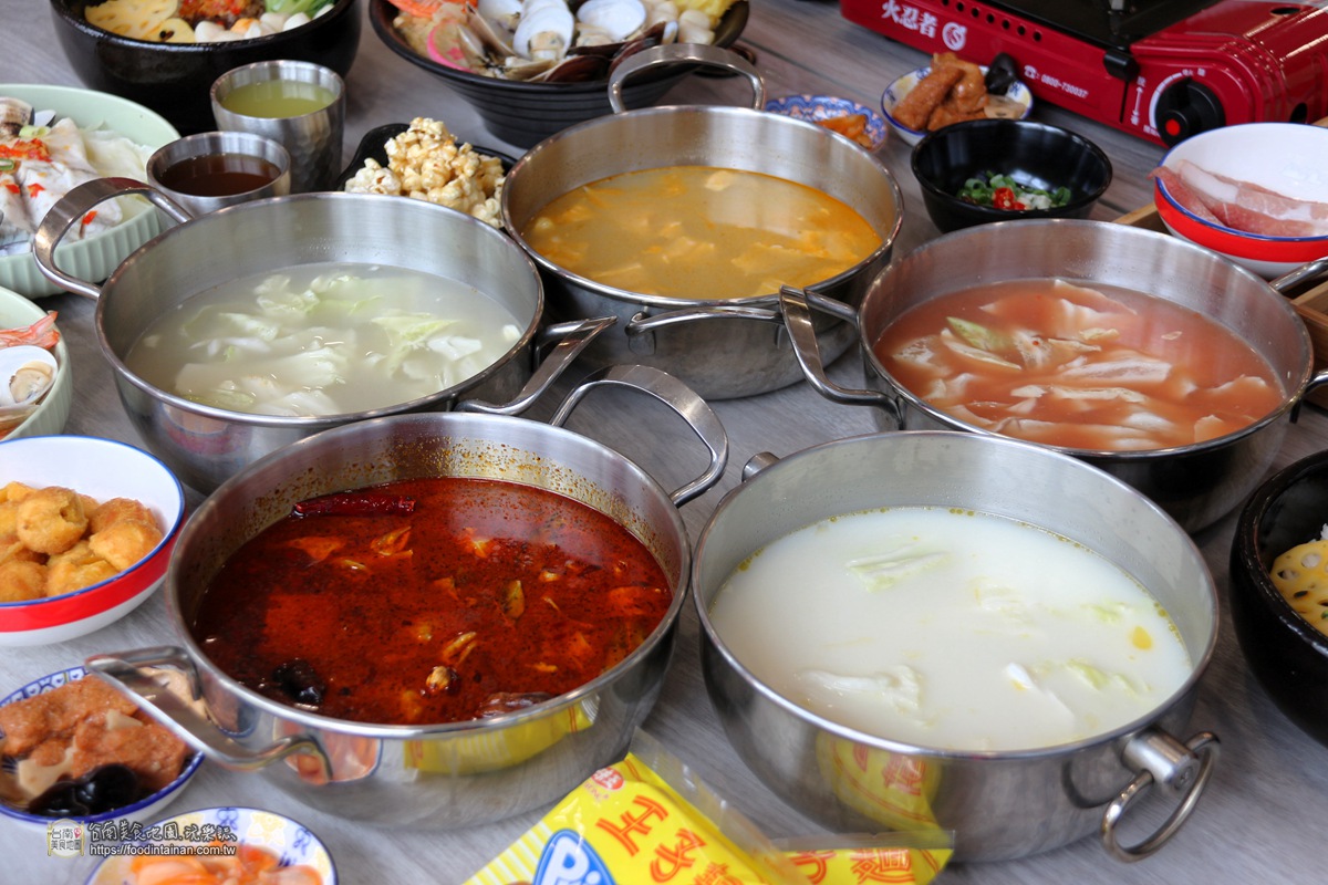 個人火鍋套餐湯底:重慶老火麻辣鍋(含牛油)、小農牛奶白湯鍋、泰式檸檬酸辣鍋、泰香香茅清湯鍋、嚴選蕃茄濃湯鍋、黃金16小豬鍋