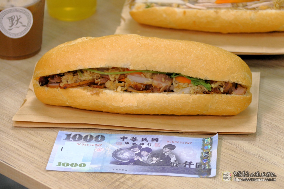 默 越南咖啡法國麵包的越南法國麵包個頭不小,拿千元鈔做對比就知道份量有多巨!料好實在讓編編吃完就很有飽足感了呢~