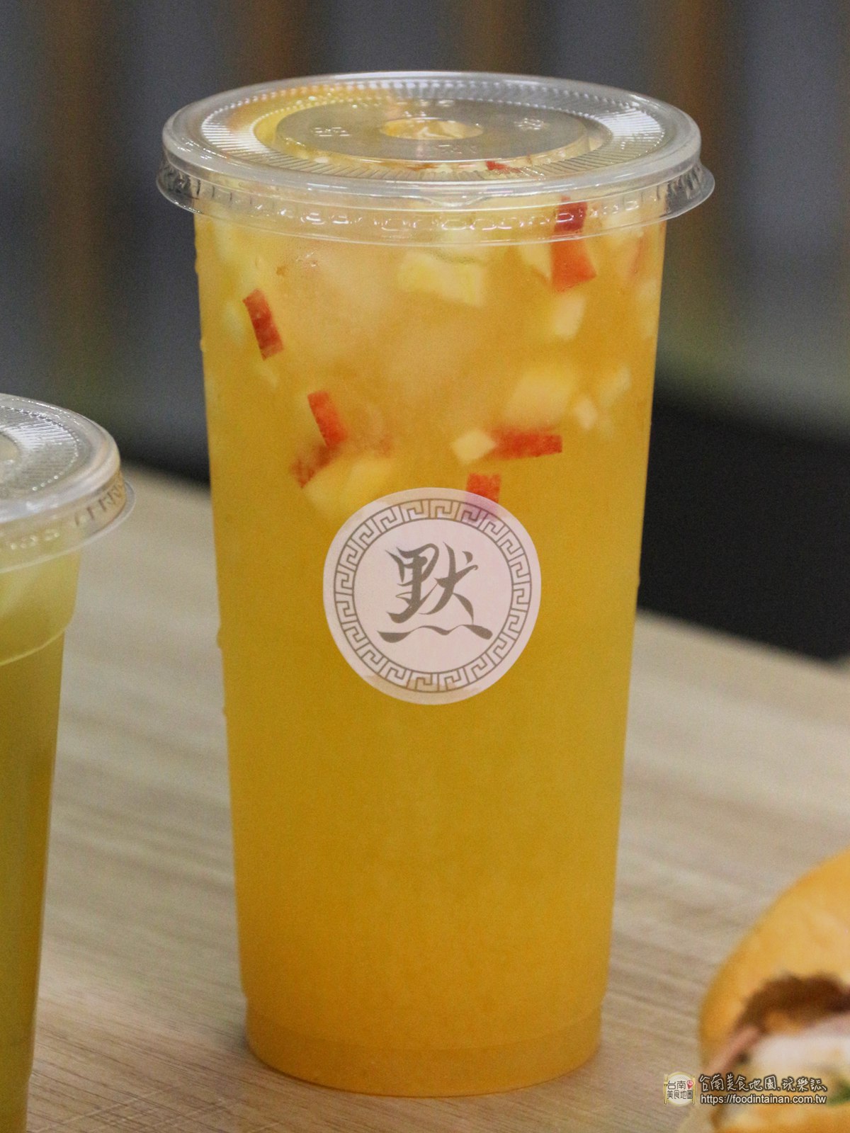 水果會依季節更替的綜合水果茶,加入4~5種特選水果特調而成。今天編編喝到的是用水蜜桃、柳橙、百香果及新鮮蘋果丁組合的綜合水果茶,新鮮爽口超適合夏天!