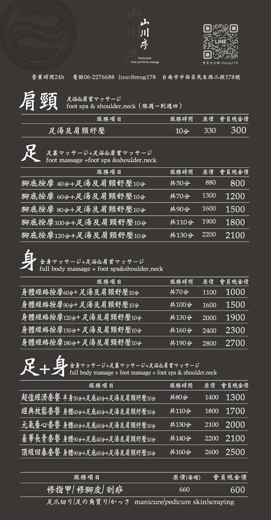 山川序足體養生會館 價目表DM