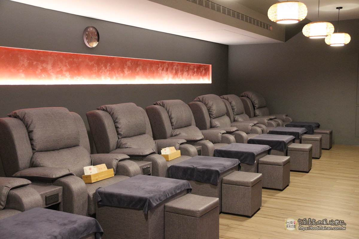 肩頸按摩結束後,可自行調整沙發椅背的高度,並戴上熱敷眼罩,享受師傅用推、點、揉、捏等多種手法的腳底按摩,好好舒緩足底和小腿平常積累下來的壓力~