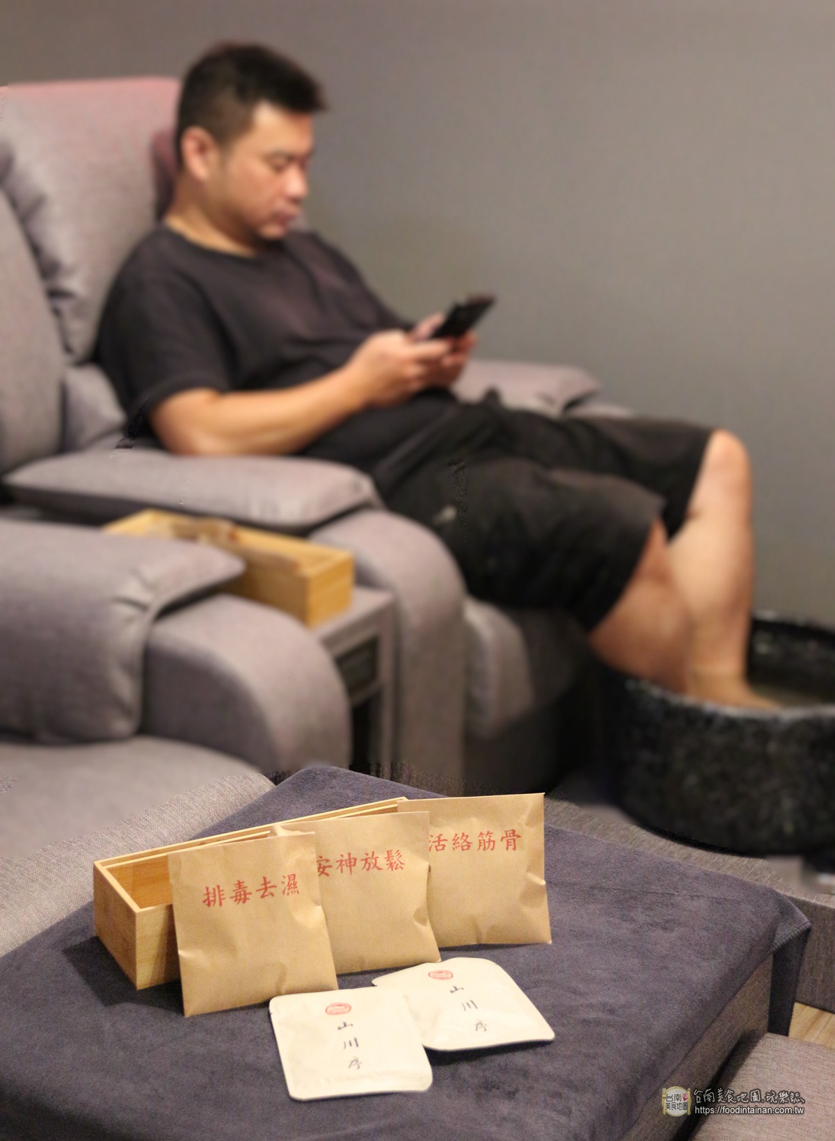 中藥包泡腳的足浴、熱敷眼罩舒緩眼睛的腳底按摩、和單人、兩人獨間包廂油指壓全身經絡按摩的山川序足體養生會館-民生旗艦館,提供每一位客人從頭到腳、由內而外的身體減壓享受!