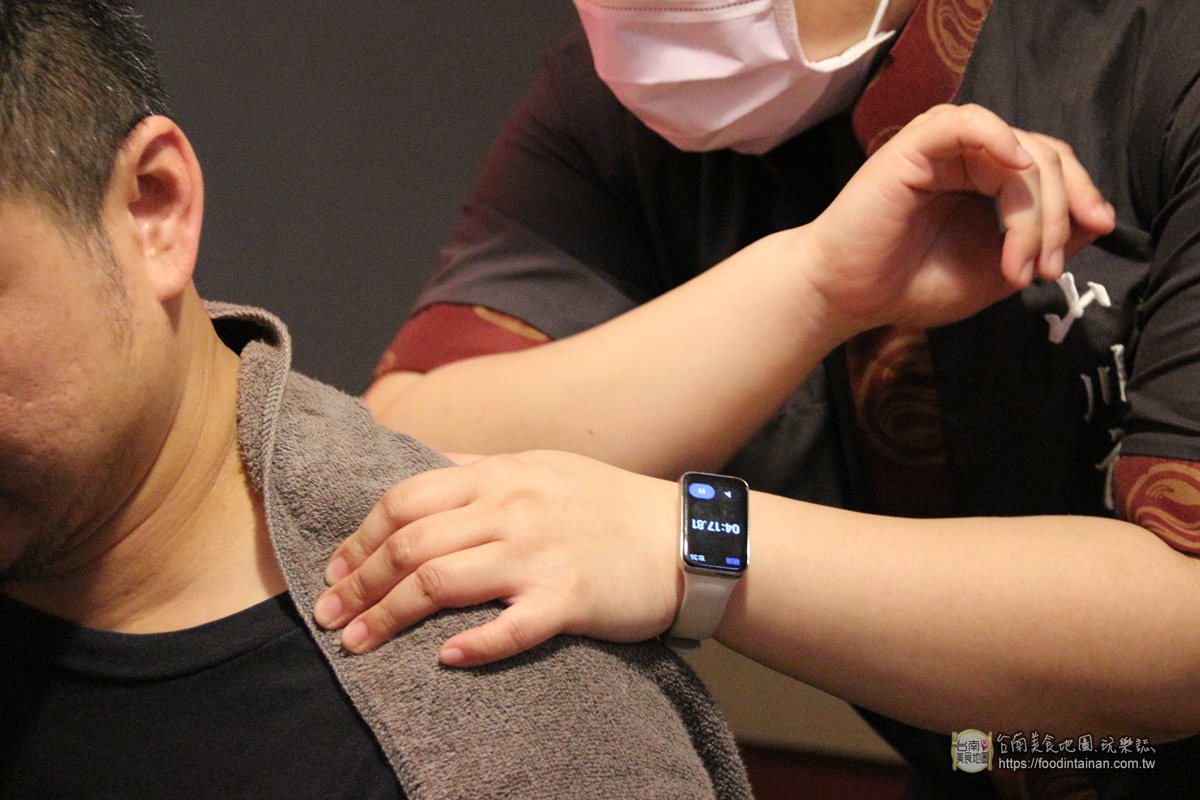 雖然肩頸按摩是贈送的,師傅依舊不馬虎的幫好友放鬆「硬綁綁」的頸部和肩膀呢!