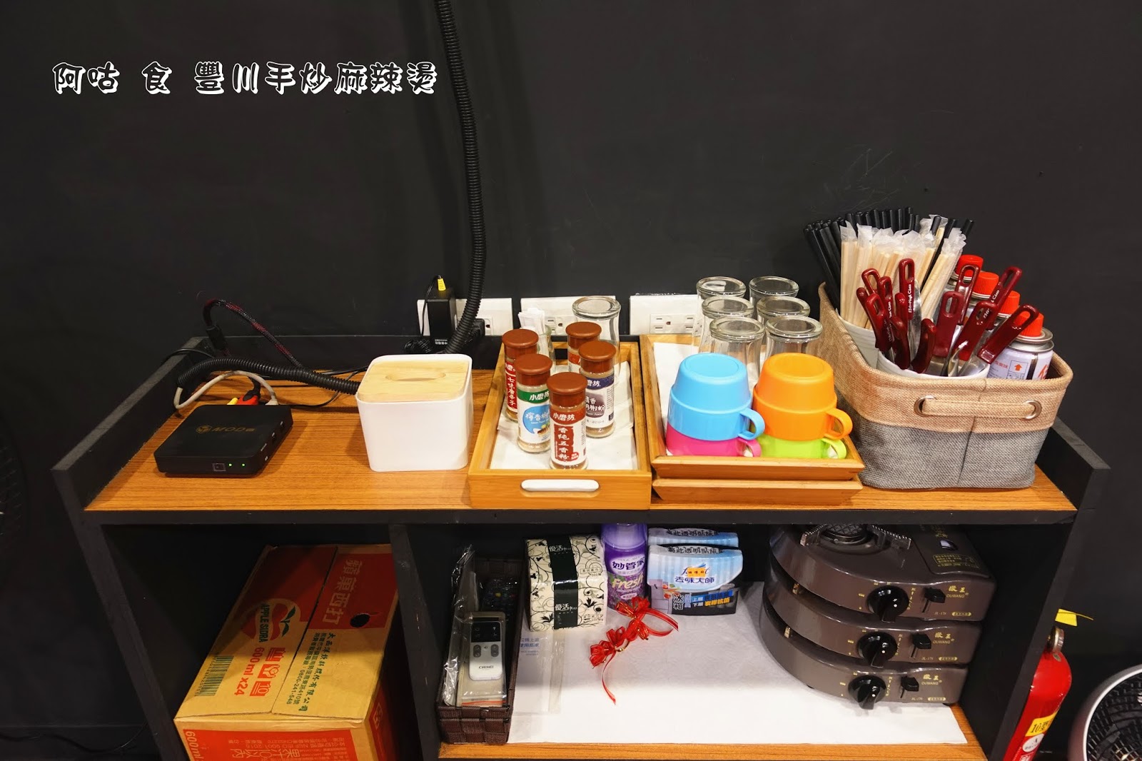 提供筷子、湯勺、杯子等餐具以及各式調味料。