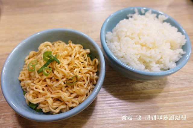 小火鍋附的科學麵由店家以麻辣湯頭烹煮後上桌,吸飽湯汁的麵條軟硬適中,很快地就「咻嚕嚕」盡數入口。