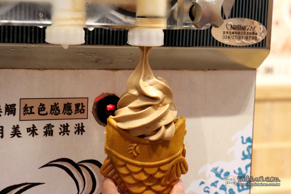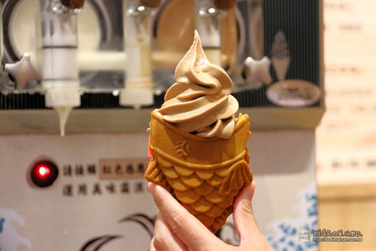 焦糖甜香的鯛魚燒裡是濃郁的卡士達內餡,再擠上用北海道牛奶特製的獨家厚奶茶霜淇淋!甜香可口的焦糖卡士達鯛魚燒日式甜點讓人幸福感爆棚~