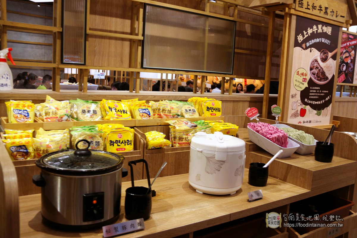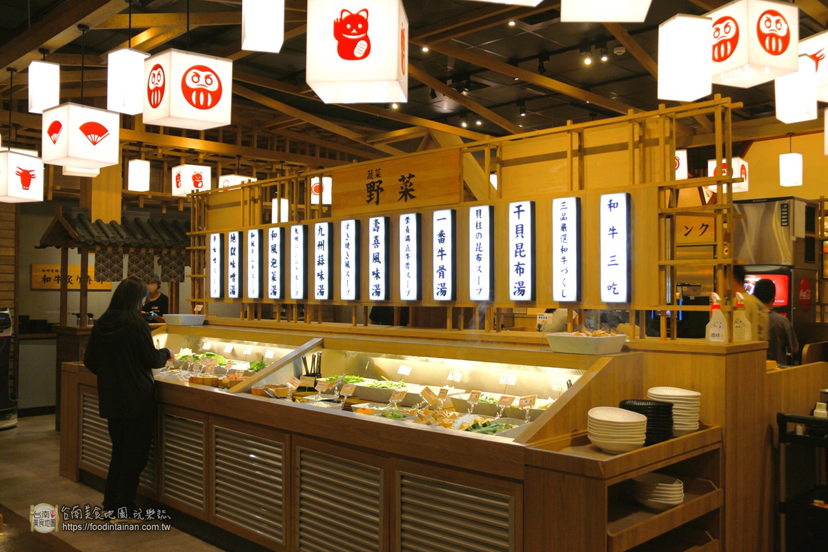 和牛涮自助吧內用120分鐘無限自取,細分為『醬料區』『蔬菜區』『副食區』『甜點區』『飲料區』五大專區!