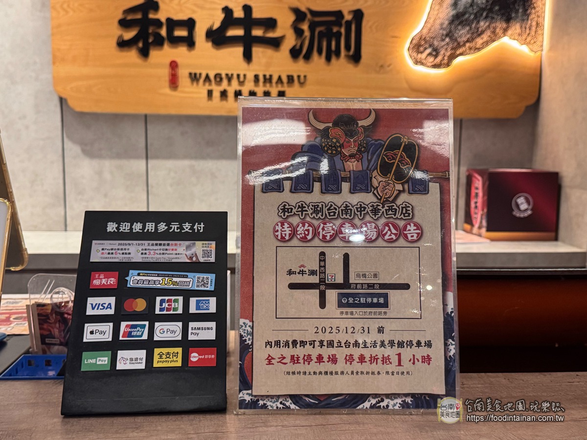 位於台南安平中華西路上的和牛涮 日式鍋物放題,就在台南永華市政府附近、建平公園旁邊。開車朋友可停台南生活美學館停車場,內用消費可折抵1小時停車費~店內超過百席座位,慶生會、謝師宴、公司聚餐或團體訂位都很適合!