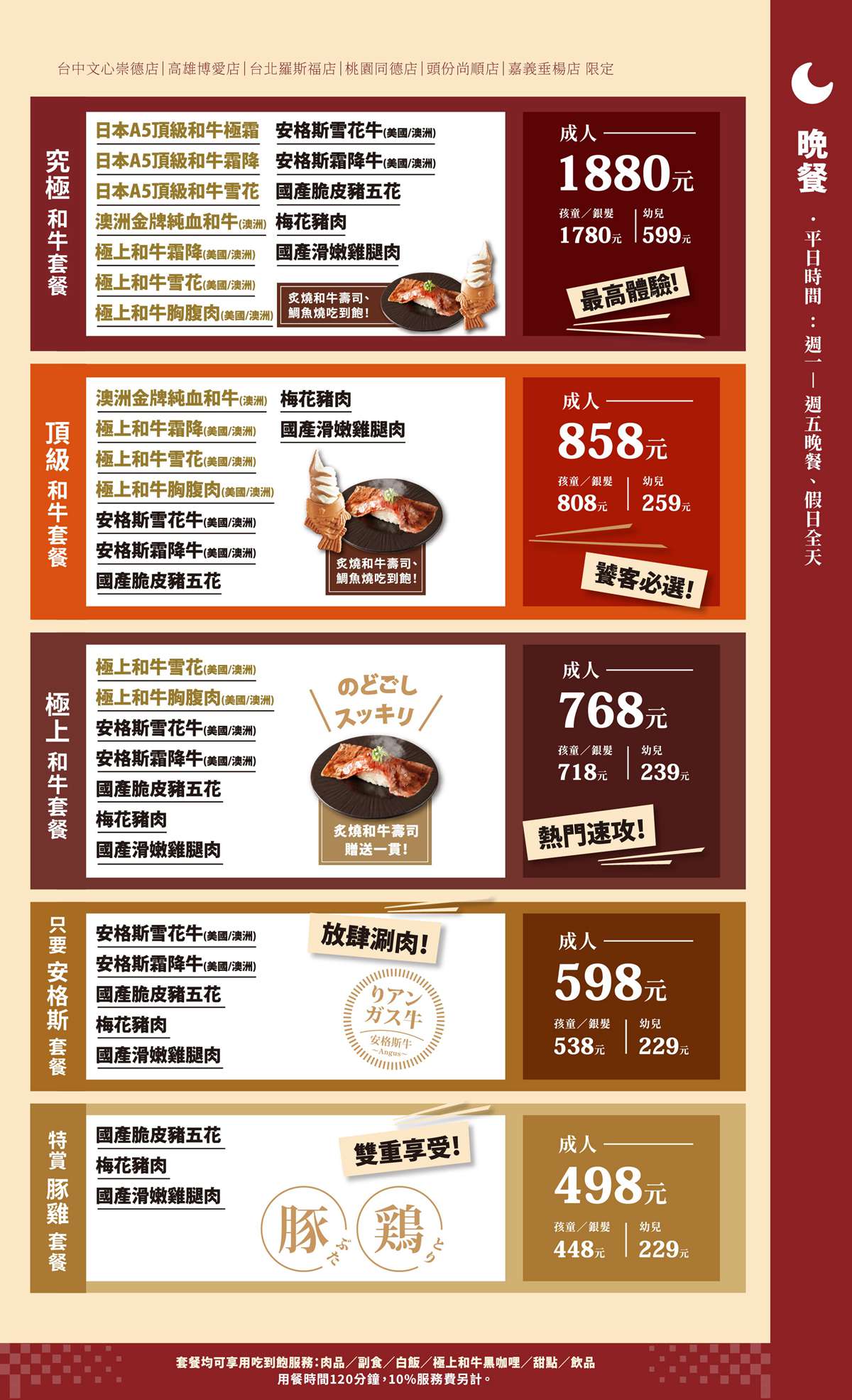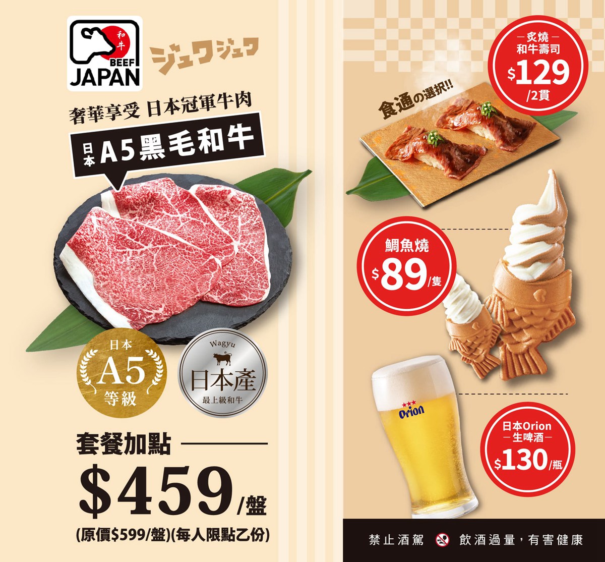 週一到週五晚上8點後,來店消費$858(含)以上套餐,就可參加臉級日本A5和牛挑戰活動!