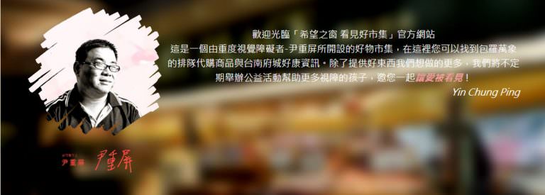 分享 因為擔任第二屆台南美食公益辦桌主辦認識了尹仲平先生,了解到他的為視障朋友為公益努力奉獻的歷程,所以連同其他二位主辦熱血玩台南、南人幫 – Life in Tainan一起來拜訪尹仲平先生,這次訪談更加了解原來尹仲平先生創辦許多網路平台販售著我們台南伴手禮與相關台南景點票券,靠著少數的收入來支持著他行善做公益的心~ ▼最佳男主角~尹仲平先生 先天視覺障礙,尹仲平的左眼只剩光覺,完全 … 閱讀全文 視障的勇者尹仲平先生~希望之窗看見好市集,用心一定能看見